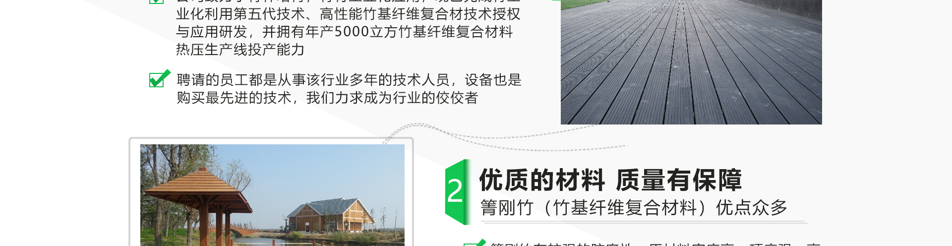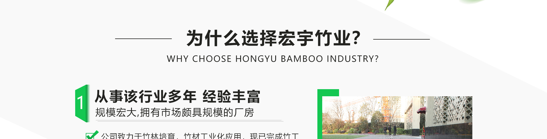 宣城宏宇竹業(yè)有限公司位于“華夏毛竹首鎮(zhèn)”的安徽省宣城市涇縣蔡村鎮(zhèn),公司致力于竹材工業(yè)化應(yīng)用與研發(fā),已完成竹工業(yè)化利用第五代技術(shù)-竹基纖維復(fù)合材技術(shù)應(yīng)用研發(fā),并獲得2015年度國家科技進步獎二等獎。公司擁有行業(yè)幅面3850*1320mm的5400噸壓力的20層熱壓機,可以直接壓制3850*1180*52的坯板,具備年產(chǎn)10000立方米的生產(chǎn)能力。宏宇竹業(yè)以“領(lǐng)導(dǎo)竹材恒久價值”為己任,以匠心的工藝,銳意進取的管理團隊打造一個產(chǎn)品多樣化、市場多元化的科技型企業(yè)。公司從成立之初一直重視品牌建設(shè),公司注冊商標“箐剛“竹,致力打造戶外竹材優(yōu)異品牌,讓宏宇竹業(yè)深入每一個消費者的心。